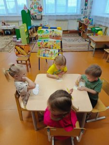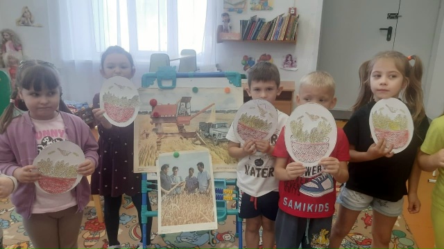 С ребятами была проведена беседа о том, как выращивают хлеб, сколько работы нужно проделать, чтобы получить булочку хлеба, какой он бывает, как приходит к нам на стол, о пользе хлеба.