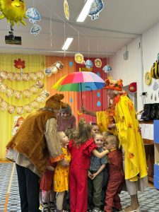 Особенным гостем стала прекрасная Осень, вместе с которой пришёл весёлый и добрый Мишка, Пугало и Слякоть Холодрыгишна.. Вместе со сказочными героями наши маленькие артисты ярко исполнили любимые песни, выразительно прочитали стихотворения и весело участвовали в увлекательных конкурсах и играх. 🎉